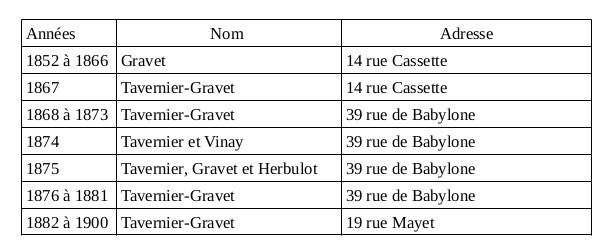 From 1867, the name of Tavernier-Gravet appears, at the same address. What is the reason for this new name ?
