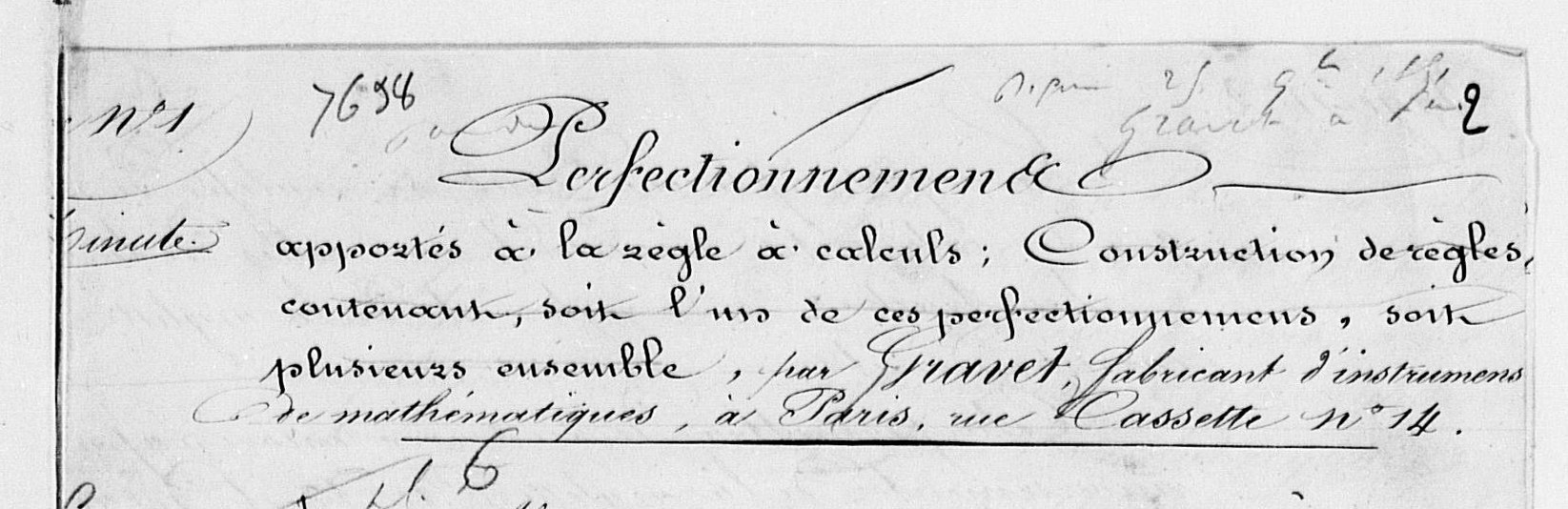 engineer for mathematical instruments, rue Cassette, n° 14 "